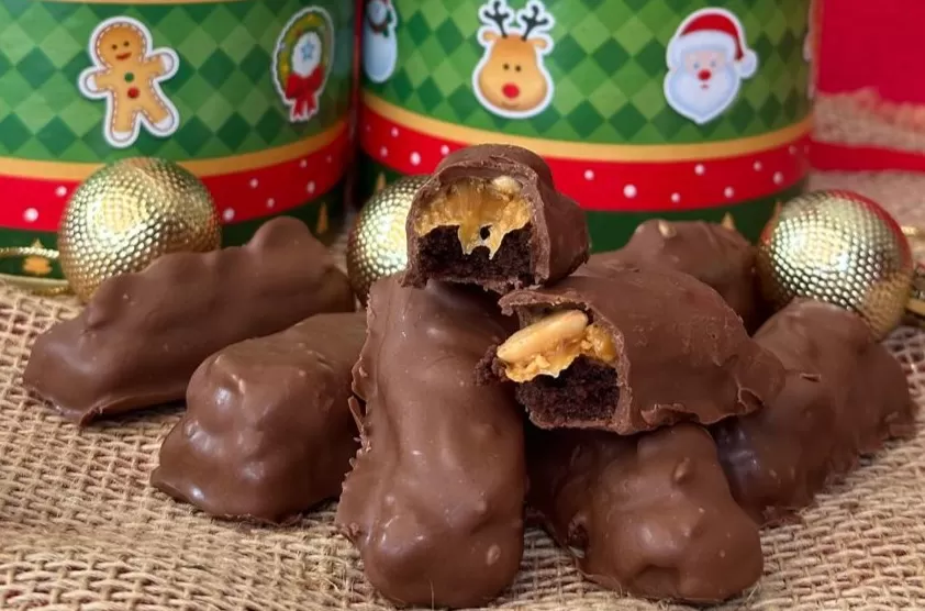 Barrinha estilo TWIX com delicioso caramelo salgado, amendoim e brownie jujuba!