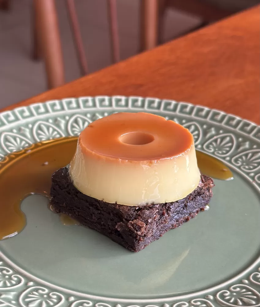 Uma combinação deliciosa e surpreende de Brownie e Pudim. Vale MUITO. a pena experimentar!